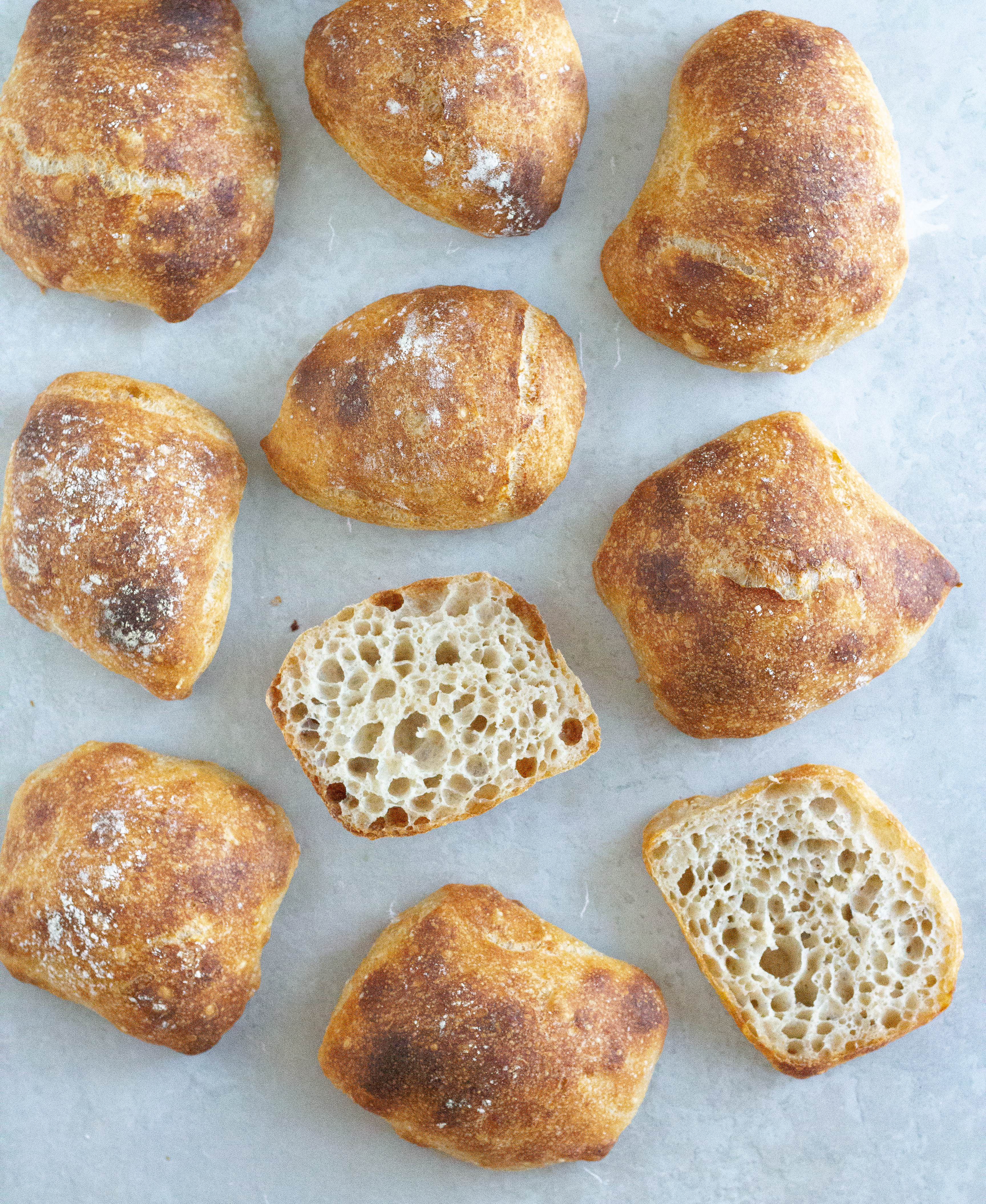 Dejen er ret tynd, så det er vigtigt at man bruger en hvedemel med et højt proteinindhold, som gør at bollerne ikke bare falder sammen. Jeg bruger ofte en god økologisk manitoba hvedemel – jeg synes den giver en dejlig smag til brødet, og så giver det bare virkelig luftige, høje og flotte boller.